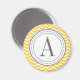 Personalized monogram magnets are great for the home or office. This one features a chevron pattern background and decorative round frame.