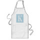 Custom monogram long aprons for men women and kids. Personalized BBQ aprons with name initial. Initialed design for chef cook and cooking enthusiasts. Monogrammed barbecue / baking aprons in khaki beige, standard white and bright yellow. Customizable letter color. Cute chevron zigzag pattern background. Trendy blue Zig Zag stripe print. Make one for mom or dad! Elegant typography letter.