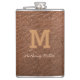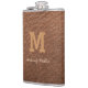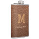 Monogram Chic Brown Leather Name Script Modern Flask