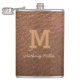Modern, brown leather, script, monogram flask. Personalize it with your initial and name.