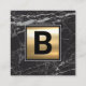 Monogram | Chic Gold Metal | Black Marble Square Business Card