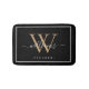 Chic, modern black monogrammed doormat with your names and year established in white elegant hand lettered script calligraphy on a black background with a gold monogram. Simply add your names, monogram and year established beneath. Stylish design and perfect luxury gift for the newlywed couple.
