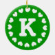 Monogram Christmas ornament with name initials Cute design with ring of hearts print. Personalize it yourself. Red and green colors customizable. Romantic engagement and wedding gift ideas for couples. Holiday accessories for him and her.