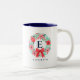 Monogram Christmas Red Bow Wreath Holiday Two-Tone Coffee Mug