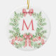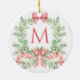 Monogram Christmas Wreath Ceramic Ornament