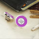 Monogram circles and squares on a purple pattern pin