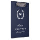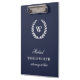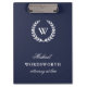Monogram Classic Elegant Professional Clipboard. Classic white laurel wreath monogram on dark blue. Elegant, impressive, conservative. Suitable for many professionals (attorney at law used as an example).
