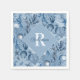 Add your monogram and family name to these beach themed napkins. Perfect for beach house entertaining, seaside parties, and everyday coastal kitchen décor, this ocean inspired underwater pattern in classic shades of blue features a variety of sea creatures such as sea horses, jellyfish, coral, starfish, seaweed, and shells.