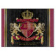 Create your very own aristocratic Coat of Arms, Emblem, Insignia or Family Crest with this beautiful, classic escutcheon or shield design. Crimson red patterns decorate a shield topped with golden crown and flanked by medieval heraldic lion or griffin. A matching top banner holds your custom wedding date / birth date / slogan or battle cry. The shield has space for your monogram initials. Bottom banner carries your family name. There is also space below for your favorite quote, motto or message. Replace the sample text with your own for a personalized gift. A gender neutral design that will work for families, groups, couples or individuals. Makes a wonderful gift for Wedding, Anniversary, Birthday, Retirement, Promotion, Father’s Day, Bachelor Party, Wedding Shower, Graduation, International Heraldry Day, Medieval or Fantasy-themed parties and other special occasions.