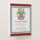 Create your very own valiant warrior Coat of Arms, Emblem, Insignia or Family Crest with this jewel-toned classic escutcheon or shield design. Emerald green acanthus leaves decorate a gold and sapphire blue shield topped by a knight’s medieval armour, sword and inkwell with quill or antique pen. Red & silver circle with heraldic dragon ornament the shield. A matching banner holds your name or motto / slogan / battle cry. The shield has space for your monogram initials and special date. Replace the sample text with your own for a personalized gift. A gender neutral design that will work for families, groups, couples or individuals. Makes a wonderful gift for Wedding, Anniversary, Birthday, Retirement, Promotion, Father’s Day, Bachelor Party, Wedding Shower, Graduation, International Heraldry Day, Medieval or Fantasy-themed parties and other special occasions.