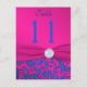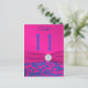 This monogrammed cobalt blue and fuchsia pink floral damask table number postcard with FAUX ribbon and jewelled medallion matches the wedding invitation shown below. **You must change the number 11 to each of the table numbers you need, add it to your cart, and then return and repeat the process until you have all the individually numbered cards that you need in your cart. Stand it on a small easel, or in your centerpieces. If you need assistance, email niteowlstudio@gmail.com.