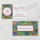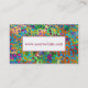 This business card features a piece of abstract digital modern art. A smattering of tiny squares in different sizes are sprinkled over a watercolor-textured background. I created this abstract art piece digitally. Features greens, yellows, orange, hot pink, blue and purple. The left side of the front is covered with the colors overlaid with a circular badge with red border for adding your initial for monogram. Details are in red to the right, contrasting beautifully with the stark white background. The back is completely covered with the same multi-colored abstract art as well as a red-bordered white rectangle which offsets the website address. These overlay elements can be removed if you prefer. The funky, unique texture adds depth and the abstract quality of this design makes it perfect for people in creative fields. The colorful background art design can be moved around, rotated or resized if you'd like to have a bit of control over the ultimate look of these cards. Likewise, change your fonts if you wish.