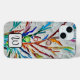 This colorful phone case is decorated with a unique abstract botanical mosaic and an elegant monogram.