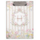 Introducing our Monogram Colorful Floral Rococo Style Stripes Clipboard. Featuring pretty watercolor flower illustrations in classic style and paster colors with editable texts that can be personalized with your initial and name. Suitable as school supply for girls.