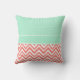Monogram Coral Chevron with Mint Polka Dot Pattern Throw Pillow