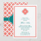 Monogram Coral Pink and Teal Quatrefoil Wedding Invitation