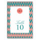 Monogram Coral Pink and Teal Zigzag Pattern Table Number