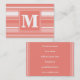 Monogram coral stripes business card