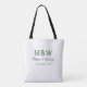 Monogram couple gray green modern romantic date si tote bag