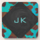 Monogram Cow Brown and Teal Print Beverage Coaster