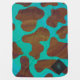 Monogram Cow Brown and Teal Print Swaddle Blanket
