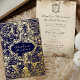 Perfect for couples embracing a Victorian, vintage, or antique wedding theme. This stunning invitation features a personalized wedding crest with your initials, adding a touch of elegance to your special day. The navy blue background serves as the perfect backdrop for the intricate vintage Victorian scrolled design in shimmery gold foil.
