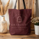 Monogram Crest Burgundy Red Rose Graduation Tote Bag