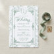 This monogram crest wedding invitation features a leafy botanical shield crest with a vintage floral frame and real letterpress debossed texture. The calligraphy script and classic formal layout make these wedding invites perfect for elegant floral garden and vintage Victorian themed weddings.