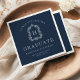 Monogram Crest Navy Blue White Graduation Party Napkins