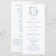 Elegant floral crest vibrant blue monogram wedding program.