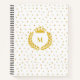 Monogram, Crown, Laurel & Gold Stars on White Notebook