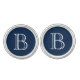 Silver plated cufflinks shown in a Navy Blue and White monogram letter.