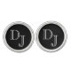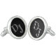 Silver plated cufflinks shown in a solid color of black with monogram Initials.