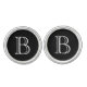 Sterling Silver Plated cufflinks shown in a black and white monogram letter. Customize this item and change the letter to yours or buy as is.