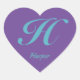 Monogram Cursive Letter H Blue Purple calligraphy Heart Sticker