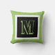 This custom pillow is ready to personalize with your own monogram in a bold black and green design for unique decor.