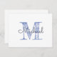 Monogrammed custom name boy notecard to customize. Hand sketched initial and script name in dark blue and blue black lettering. Add your boy's name and initial. Works for a girl too!