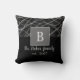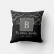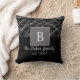 monogram custom pillow gray and black abstract design with text to personalize for unique home decor. Original abstract art copyright Ann Powell all rights reserved.