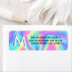 Monogram custom return address label with initial. Holiday custom return address label with vintage monogram and holographic background.