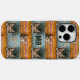 Monoram Cute Cats Knitted Girly Personalized iPhone 16 Pro Max Cases features cute cats peeping through an orange and blue kintted pattern. Personalized with your custom monogram. Perfect as a gift for cat lovers for Christmas, birthday, holidays and more. Designed by ©2024 Evco Studio www.zazzle.com/store/evcostudio