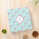 Stay organized in style with this monogrammed binder featuring a fun, cute pattern of watercolor pink hearts over a vibrant turquoise blue background. Your initial and name are displayed in white on a bold pink backdrop, making it the perfect accessory for her.