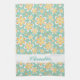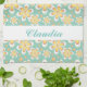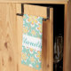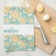 Monogram cute orange flowers on green kitchen towel