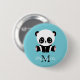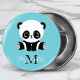 Monogram Cute Panda Personalized Bubble Gum Blue Button