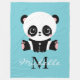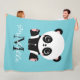 Monogram Cute Panda Personalized Bubble Gum Blue Fleece Blanket