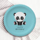 Monogram Cute Panda Personalized Bubble Gum Blue Paper Plates