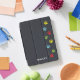I was super excited when I got my cover in. It is attached by a magnet across the edge. I don’t think it will be very protective but it is very cute. I’m going to keep my iPad in a sleeve and use this face cover while I have it out. It folds to create a tilt for better viewing and to keep the iPad at a slight angle for typing. The colors are bright and it is fun. I’ve really enjoyed it. The personalization looks like amazing. It is the same color as the picture and is the same brightness. Well done! Very nice.