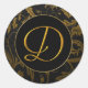 Black and gold Monogram seals with a beautiful scrolling script text art on elegant floral damask. These stickers add a unique touch of class to your wedding invitations!