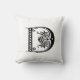 Monogram D Initial Black and White Floral Pattern Throw Pillow