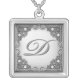 Elegant scrolled Monogrammed Necklace with an embossed look and pewter-like scroll-work.