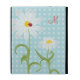 A sweet and girly floral design featuring two white daisy flowers with a lady bird on a blue polka dot background. The initial can be customized to create a personalized gift, with the color of the letter coordinating with the red lady bug.